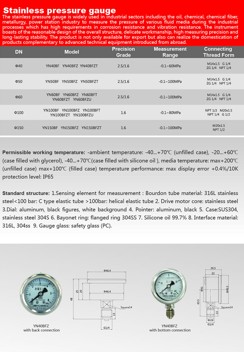 Stainless pressure gauge